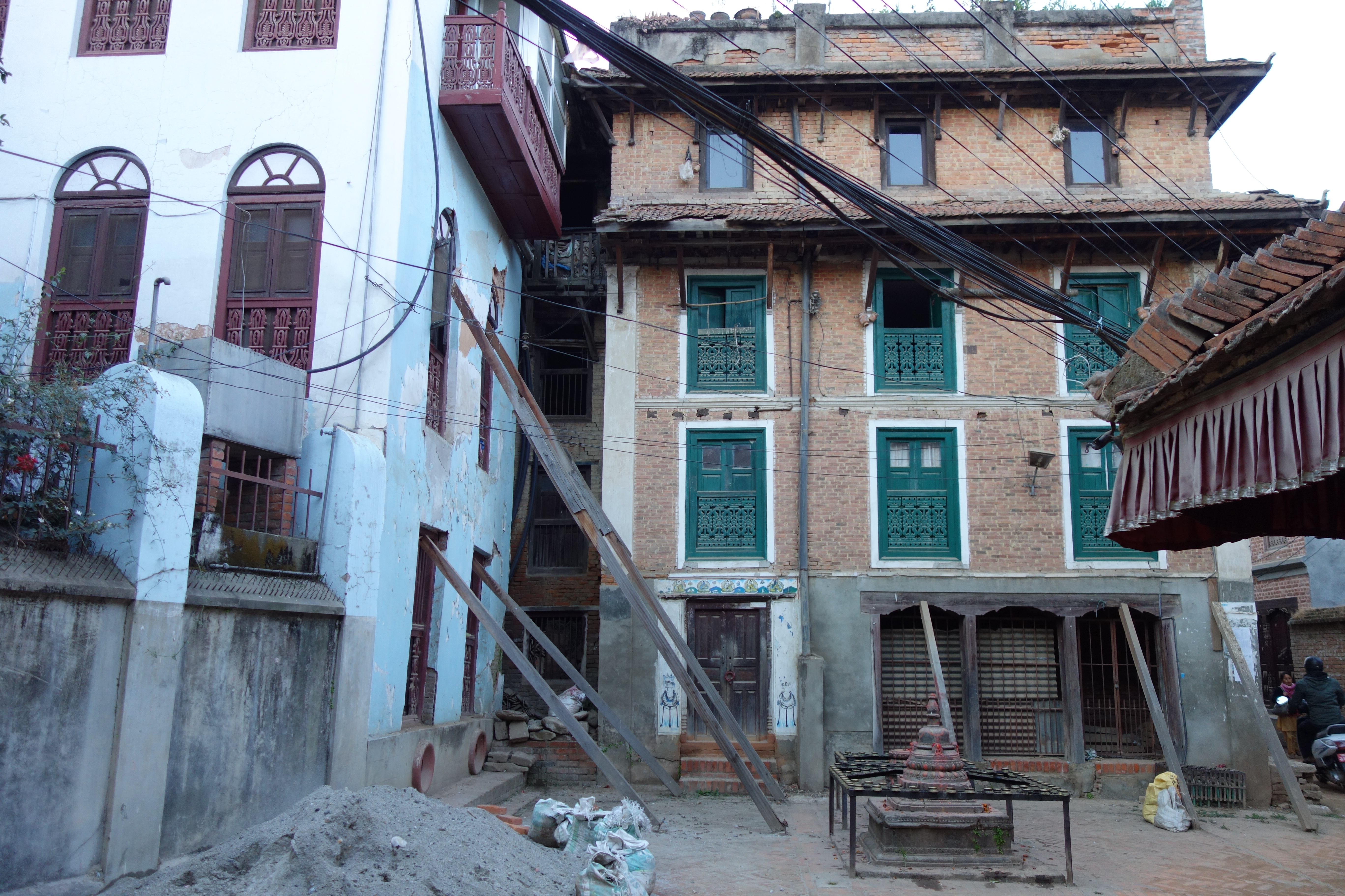 kathmandu earthquake supports wooden braces (2) February 9, 2018Full resolution (5472 × 3648) Wooden supports continue to hold buildings up in the aftermath of the 2015 earthquake.